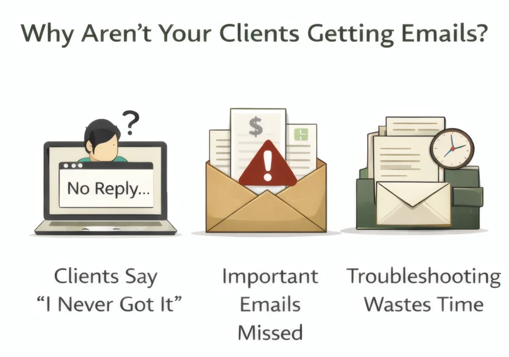If clients say they didn’t get your email, or are calling you because they didn’t receive your business emails and your emails are showing up in spam, you likely have email deliverability issues.